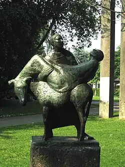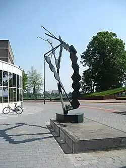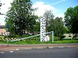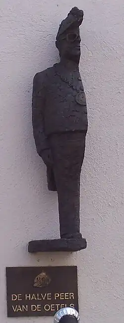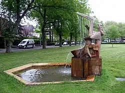 - ↑ Een kopie van een beeldje uit 1974, destijds gemaakt door Lambert van Dartel, gestolen in 2009.