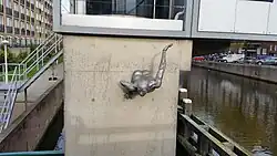 Vierwindstrekenbrug, zijkant / oostkant bij trappen (Admiralengracht / Jan van Galenstraat) |
