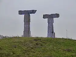 - ↑ De zeven sculpturen vormen twee 'families' van cactussen in het gras en zeehonden aan het water, in het midden een ellipsvormige, bakstenen beeld.