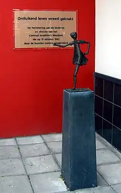 - ↑ Gestolen in 2020 en enkele dagen later weer gevonden enkele straten verderop.Ard Schouten en Florine Nesselaar, Gestolen beeld voor Joodse kinderen uit Utrecht is gevonden: ‘Ik heb dikke tranen gehuild’. AD.nl (30-01-2020). Gearchiveerd op 31 januari 2020. Geraadpleegd op 03-01-2020.
