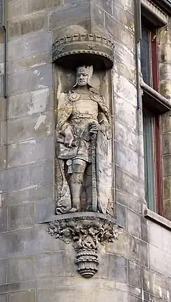 | 1957 | Rechtvaardigheid, waakzaamheid, autoriteit, politiek, geloof (v.l.n.r.) | Pieter d' Hont | Stadhuisbrug (pediment op het stadhuis) | steen | ![]() |