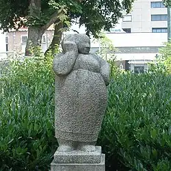 - ↑ Op de sokkel allerlei teksten; voor: "Al is ons moederke nog zo errum toch dekt ze werrem daor kraas ik geen gat vur in munne buik ge moet oe erremoei thuislaoten war het broske zit is vur beter ,n ouw perd kapot, dan ,n jong versleten".