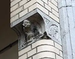 | 1904 | Kraagstenen met aapjes (2 exemplaren) | onbekend | Brugstraat 7 | Groningen | hardsteen | ![]() |