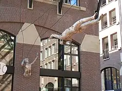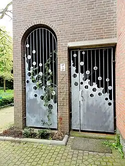 - ↑ Vanaf 1949 gevelsteen aan de gemeentelijke gymnastiekschool in de Sint Jansstraat, afgebroken in 1961. In 1964 herplaatst aan een uitbreiding van het Praediniusgymnasium aan de Kruitstraat.