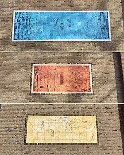 | 1953 | Tableaus met thema vrede (4 exemplaren)[5] | Anno Smith | Van Leeuwenhoekstraat | Groningen | geglazuurd terracotta | ![]() |