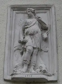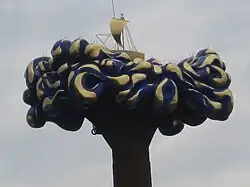- ↑ Oorspronkelijk in 1974 geplaatst nabij het sportcomplex. Gestolen in 2008.