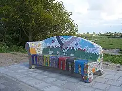 | 2012 (12 mei 2012) | een Social Sofa (Buurtbank) | Is door bewoners uit de omgeving van mozaïeksteentjes voorzien, in het wijkgebouw aldaar, in april 2012. | Louise de Colignylaan (huidige locatie: Callaoweg, foto: Colignylaan) | Katwijk aan den Rijn | beton + geglazuurde mozaïeksteentjes | ![]() |
