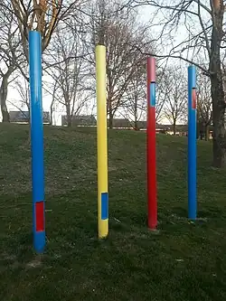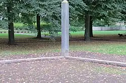 - ↑ Ondertitel: Een monument voor de hedendaagse woningbouw. Ontstaan als onderdeel van de nationale, door Wim Beeren gecureerde kunstmanifestatie Sonsbeek Buiten de Perken. Het kunstwerk is feitelijk het vastleggen van de maatvoering van een woningwetwoning bestaande uit drie betonnen palen: een rechtopstaande paal van 3 meter en 2 betonbalken in het gazon van 7 en 10 meter. Het kunstwerk is een geschenk van de nabijgelegen belastingdienst. Zie: 'Obelisk Van de Vennepark-Zuid' op forum.mestreechonline.nl, 12-15 februari 2025.
