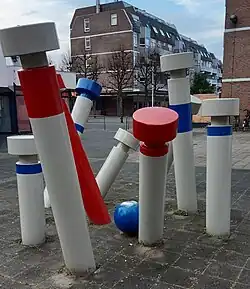 - ↑ Ontworpen voor de school voor beroepsbegeleidend onderwijs, later Trajectum College, aan de Bemelergrubbe; in 2015 verplaatst naar de parkeerplaats van het amateurkunstencentrum Kumulus aan de Herbenusstraat.