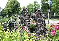 De beeldengroep is gesigneerd met "Jits Bakker" naast de linkervoet van het meisje
