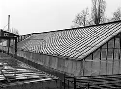Verkleinde reconstructie van een kas uit Aalsmeer, die dateert uit 1900. Deze kas is een van de oudste, bestaande typen in Aalsmeer, die werd gebruikt voor het kweken van potplanten. De pottenkas werd verwarmd met een kachel, die gestookt werd met cokes. De kas is nu in gebruik voor het kweken van kamer- en groenteplanten ten behoeve van het buitenmuseum. De zwart-witopname geeft de oorspronkelijke situatie weer. | ![]() ![]() |