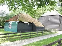 Voormalige stadsboerderij uit Harderwijk verbouwd als toiletruimte. Oorspronkelijk woning (annex bedrijf) in de Vulderswijk, na verval van de wolindustrie tot stadsboerderij verbouwd. Het vee werd geweid op de gemeenteweide, tuinbouw werd bedreven op gepachte grond aan de rand van de stad. Vee was vooral van belang voor de mest, benodigd voor de tuinbouw. | ![]() |