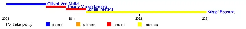 - 01-01-2001 - 31-12-2006: Gilbert Van Nuffel, liberaal VLD