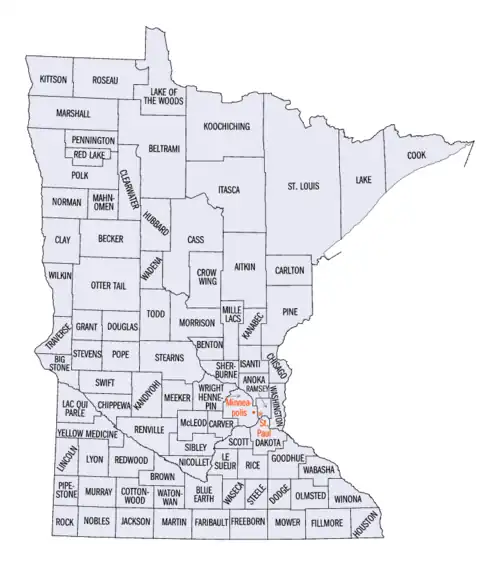 De Amerikaanse staat Minnesota is onderverdeeld in 87 county's.