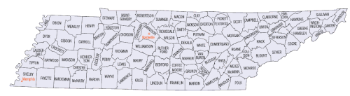 De Amerikaanse staat Tennessee is onderverdeeld in 95 county's, die weer zijn gegroepeerd in drie regio's (Grand Divisions).
