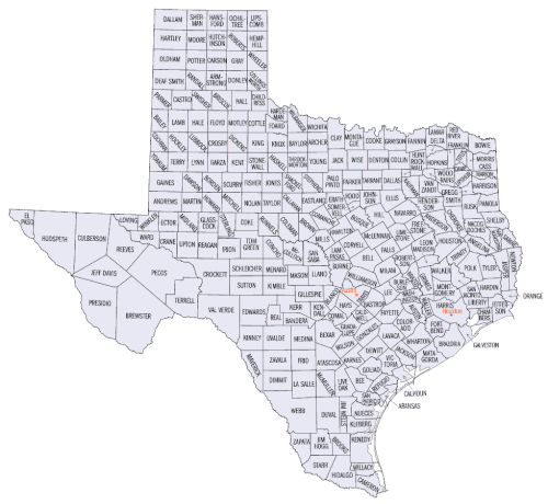 De Amerikaanse staat Texas is onderverdeeld in 254 county's en is daarmee de staat met veruit de meeste county's: