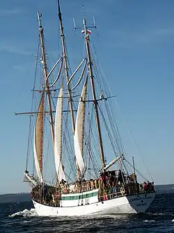 | Naam[1] | Soort schip | Bouwjaar | Lengte (m) | Breedte (m) | Diepgang (m) | Zeiloppervlak (m²) | Foto | ||