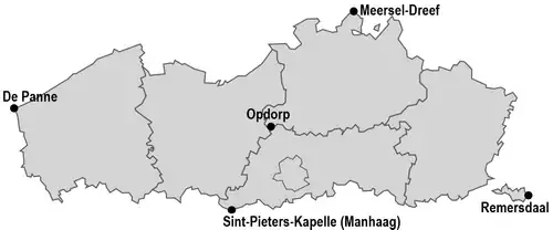 - Noordelijkste plaats: Meersel-Dreef (gemeente Hoogstraten, provincie Antwerpen)