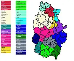 | ID | Naam | Oppervlakte (km2) | Bevolkingsaantal (volkstelling 2011) | Dichtheid (inw/km) |