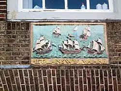| 1763 | Koopvaardijvlot en naam Het Lanswelvaare, een verwijzing naar de touwslagerij genaamd Het Lanswelvaare (1588-1934).[4] | Onbekend | Kerkstraat 52 | Monnickendam | Zandsteen | |