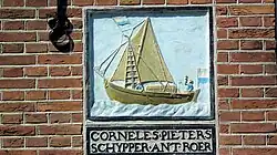| 18e-eeuws | Gepolychromeerde gevelsteen met een klein zeilschip en een tekststeen daaronder met de tekst: CORNELES•pIETERS SCHYPPER•ANT•ROER | Onbekend | Noordeinde 81 | Monnickendam | Onbekend | |