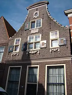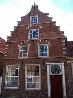 | 1681 | Klokgevel met guirlandes onder de verdiepingsramen en festoenen op de randen, oeil-de-boeuf en jaartalsteen met kwabornamenten | Noordeinde 11 | Monnickendam | Zandsteen | ||