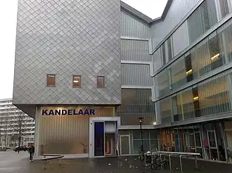 | De Kandelaar | Burgemeester Vening Meineszlaan 64 | Nieuw-West, Slotermeer | Nederlandse Hervormde kerk | Sinds 1973: Leger des Heils | 1963; Architect: Geert Kliphuis | ![]() |