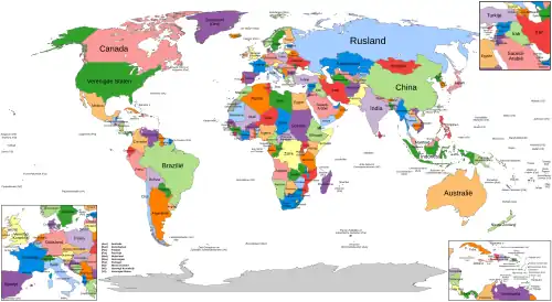 - Autonome gebieden, bezette gebieden, territoriale aanspraken op Antarctica en micronaties zijn niet op deze pagina weergegeven.