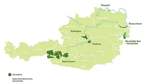 In Oostenrijk zijn 6 natuurgebieden tot nationaal park uitgeroepen. Een 7de nationaal park (Kampwald) is in oprichting.[1][2][3] Oostenrijkse nationale parken mogen niet verward worden met de Oostenrijkse natuurparken, waarin de natuur minder streng wordt beschermd.