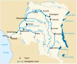 - Dit artikel of een eerdere versie ervan is een (gedeeltelijke) vertaling van het artikel List of rivers of the Democratic Republic of the Congo op de Engelstalige Wikipedia, dat onder de licentie Creative Commons Naamsvermelding/Gelijk delen valt. Zie de bewerkingsgeschiedenis aldaar.
