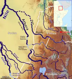 - Mareb (of Gash) (bereikt de Atbarah in de regentijd)