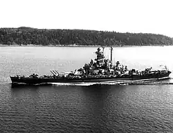 - Bewapening: 9 × 16 in (406 mm) (3x3), 20 × 5 in (127 mm) (10x2), 80 x 40 mm AA (20x4), 49 x 20 mm AA (49x1) (1980 modificatie voegde toe 32 x Tomahawk en 16 x Harpoon raketten en 4 x Phalanx CIWS, en verwijderde 6 5-in kanonnen)
