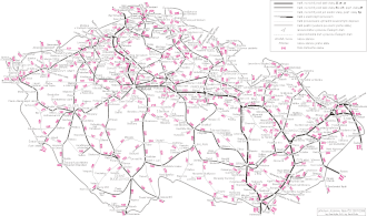 - 1 2 3 Deze spoorlijnen maken deel uit van de druhý železniční koridor (de tweede spoorwegcorridor).