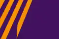 2001 - 2010 | Vlag van het Ministerie van Defensie. Deze vlag was onderdeel van de zogenaamde huisstijl van Defensie en vlag wordt met de invoering van de "rijkshuisstijl" weer vervangen. | Donkerpaarse vlag met aan de hijszijde 4 oranje banen; de rechter baan is niet volledig. |
