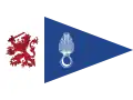 2011 - | Vlag van de Koninklijke Marine | Blauw veld met een witte paal van een derde breedte naast de paal en met bovenaan het embleem van de Koninklijke Marine in oranje. |