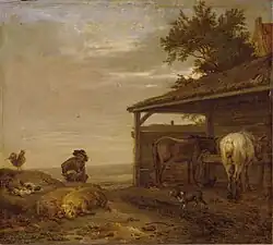 Twee trekpaarden bij een boerderij[40] | 1649 | 23,5 x 25,5 | Parijs, Musée du Louvre |