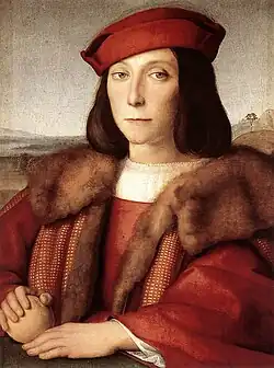 Portret van Guidobaldo da Montefeltro | 1506 | Olieverf op paneel | 69 × 52 | Florence, Uffizi | ||