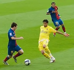 In voetbal is het belang van links- of rechtsbenigheid groot. De meeste spelers zijn rechtsbenig.[2] Wanneer een speler met beide voeten even goed kan voetballen, noemt men hem of haar tweebenig. Hoewel in het moderne voetbal heel wat spelers tweebenig zijn, hebben ze toch vaak een voorkeursvoet. Cristiano Ronaldo kan zowel met zijn linker- als zijn rechtervoet trappen, maar zal toch steeds hoekschoppen, vrije trappen, uittrappen en strafschoppen met zijn rechtervoet nemen. Linksbenige spelers worden meestal op de linkerflank geposteerd. Het gebeurt vaak dat een linksbenige speler op de rechterflank opgesteld wordt. Goede voorbeelden zijn Lionel Messi en Gareth Bale die bij FC Barcelona en Real Madrid als rechtsbuiten speelden. Op de rechterflank kan de speler naar binnen snijden en met de linkervoet trappen.
