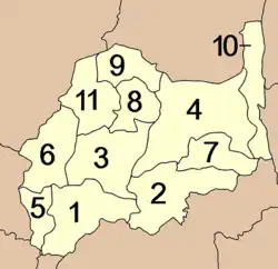 De provincie is onderverdeeld in 11 districten (Amphoe), die weer onderverdeeld zijn in 124 gemeenten (tambon) en 1110 dorpen (moobaan).