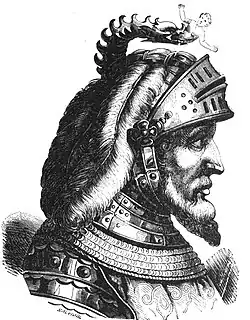 - bij Alessandria waar hij eigenhandig generaal Hugues de Baux doodde, maar zelf ook gewond werd;