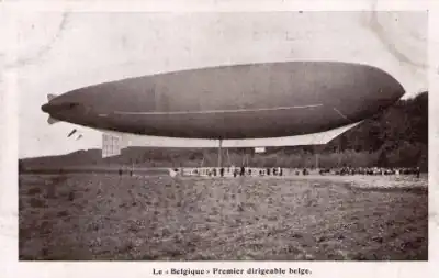 | Het eerste Belgische luchtschip, de Belgique. | Belgische piloten die sneuvelden bij de aanvallen op de bruggen van Vroenhoven en Veldwezelt op 11 mei 1940. | Een Henri Farman-Jero HF.3 op het vliegveld te Brasschaat. |