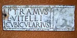 Titulus van Pyramus, kamerdienaar van Lucius Vitellius. Rome, CIL 06, 37786