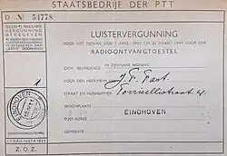 Tot 1940 werden de omroepen uit de contributie van hun leden betaald. Vanaf 1941 werd de PTT belast met de uitvoering van de heffing en verscheen de Luistervergunning. Deze vergunning was voor een jaar geldig en moest jaarlijks worden verlengd. Voor betaling moest men de vergunning, in de vorm van een kartonnen kaart, maandelijks voorzien van speciaal daarvoor gedrukte radiozegels, die op het postkantoor werden gekocht en aldaar werden geplakt en afgestempeld. Aan het einde van het jaar werd de kaart ingenomen en werd een nieuwe afgegeven. Wie giraal betaalde moest het ontvangstbewijs aan de luistervergunning hechten. Controleurs konden huis aan huis langskomen en vragen om de luistervergunning voor ieder toestel te mogen inzien. Dit systeem hield stand tot ca. 1966. In 1969 werd de heffing onafhankelijk van het aantal radiotoestellen in huis en verviel het stelsel met luistervergunningen definitief.[1]
