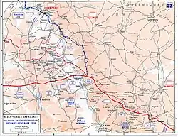 Hierna stootten de Amerikanen op het zuidelijke deel van de Hindenburglinie, waardoor de opmars alsnog een halt toegeroepen werd.