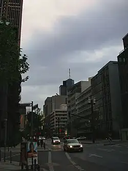 De straat begint bij de Taunusanlage, onderdeel van de Frankfurt Wallanlagen, vlak bij de wolkenkrabber van de Deutsche Bank . Het eerste gedeelte tussen Taunusanlage en Platz der Republik vormt de grens tussen de wijken Westend en Bahnhofsviertel. Aan de noordelijke Westend-zijde staan zes bekende wolkenkrabbers van Frankfurt kort op elkaar: de twee torens van de Deutsche Bank (elk 155 meter), het Trianon (186 meter), het Frankfurter Büro Center (142 meter), de Westendstraße 1 (208 meter) en ten slotte, aan de Platz der Republik, het City-Haus I (142 meter).