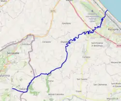De monding bevindt zich tussen het vliegveld van Rimini en de badplaats Riccione.
