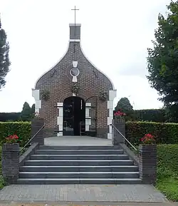 De bakstenen kapel is opgetrokken op een rechthoekig plattegrond met een halfronde koorsluiting. Het bouwwerk wordt gedekt door een zadeldak met leien en heeft op de nok boven de achtergevel een dakruiter met een piron. In de beide zijgevels zijn elk drie rondboogvensters met glas-in-lood aangebracht en ook de apsis heeft twee rondboogvensters met glas-in-lood. De frontgevel is een verhoogde klokgevel met daarop een ijzeren kruis. Midden in de frontgevel bevindt zich een rond venster met de sluitsteen en de onderste steen wit geschilderde mergelstenen. Op de hoeken van de frontgevel en de stijl en sluitsteen van de toegang zijn negblokken uitgevoerd in wit geschilderde mergelstenen. De rondboogvormige toegang wordt afgesloten met een dubbele stalen toegangsdeur met veel glas.[2]