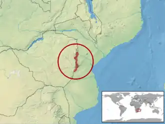 | Verspreidingsgebied in het rood. | ||||||||||||||||