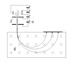Alle enkelvoudig geïoniseerde deeltjes (met eenheidslading e = 1,60217653 × 10−19 C) krijgen dus een baan met een kromtestraal r waarvoor geldt: