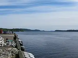 Op de oostoever ligt op ongeveer vijf kilometer van de monding de plaats Masset.